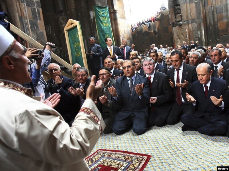 В другой средневековой армянской церкви, в кафедральном соборе Ани, в пятницу турецкая партия «Националистическое движение» совершила намаз.