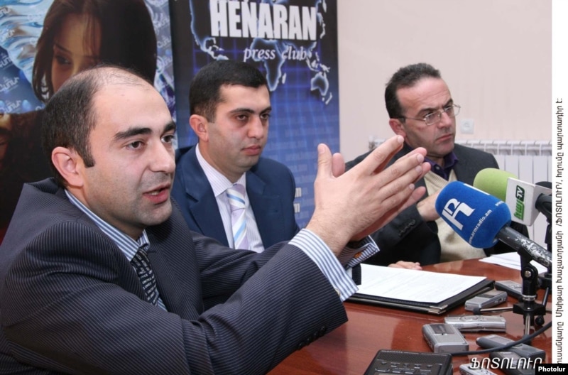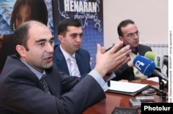 Советник защитника прав человека РА Рустам Махмудян, правозащитники Эдмон Марукян и Артур Сакунц на встрече с журналистами (слева направо)