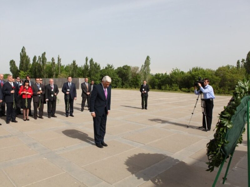 Ежи Бузек в Цицернакаберде, 18 мая 2011 г. (фотография - управление по связям с общественностью Национального Собрания Армении)