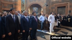 Католикос всех армян Гарегин Второй освятил церковь. Корреспондент Радио Азатутюн поинтересовался у него, знает ли он, что народ собираются не пускать внутрь церкви.